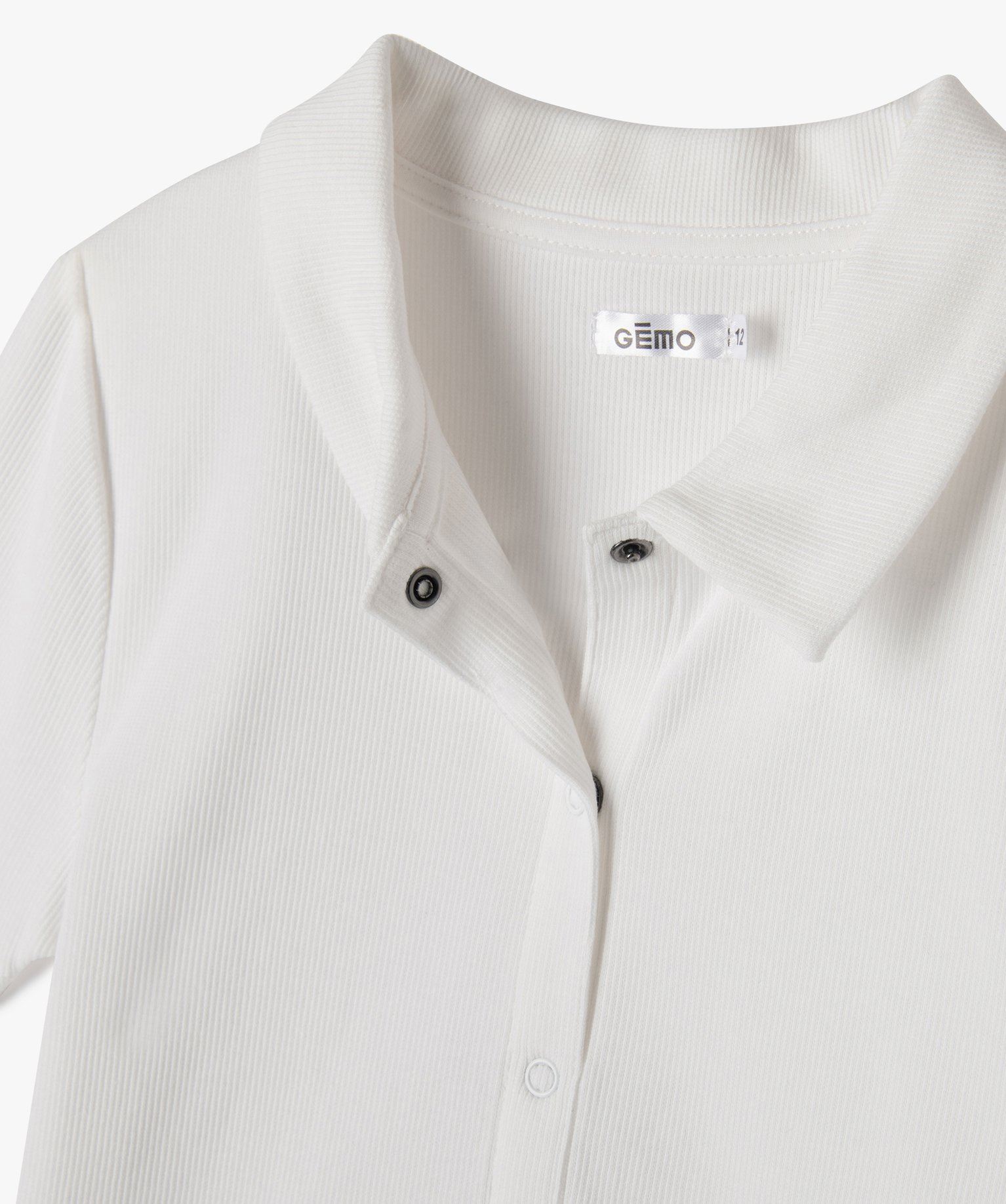 Gémo présente une version originale du polo à manches courtes, pour dynamiser le vestiaire des ados. Un polo fille en maille côtelée extensible qui se distingue par sa rangée de boutons pression dont seulement deux s’ouvrent au niveau du col. Un polo élégant à porter en version sportswear avec un bermuda et des baskets ou en version chic avec une jupe et des derbies.