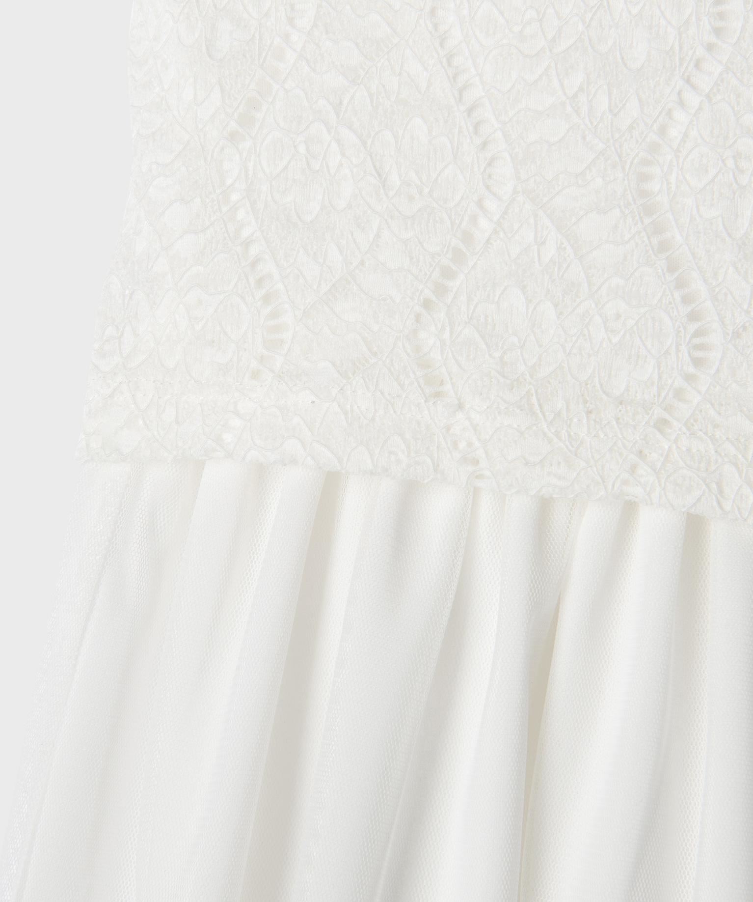Cette robe de cérémonie pour fille associe avec raffinement une dentelle délicate sur le haut et une jupe en tulle vaporeux pour un effet princesse irrésistible. Parfaite pour un mariage ou toutes les grandes occasion, elle offre un tomber léger et élégant. Conçue pour allier style et confort, elle est dotée d’une doublure douce et et se ferme facilement dans le dos grâce à un petit bouton avec une délicate ouverture en goutte. Une robe de fête à porter avec des ballerines ou des sandales à brides.