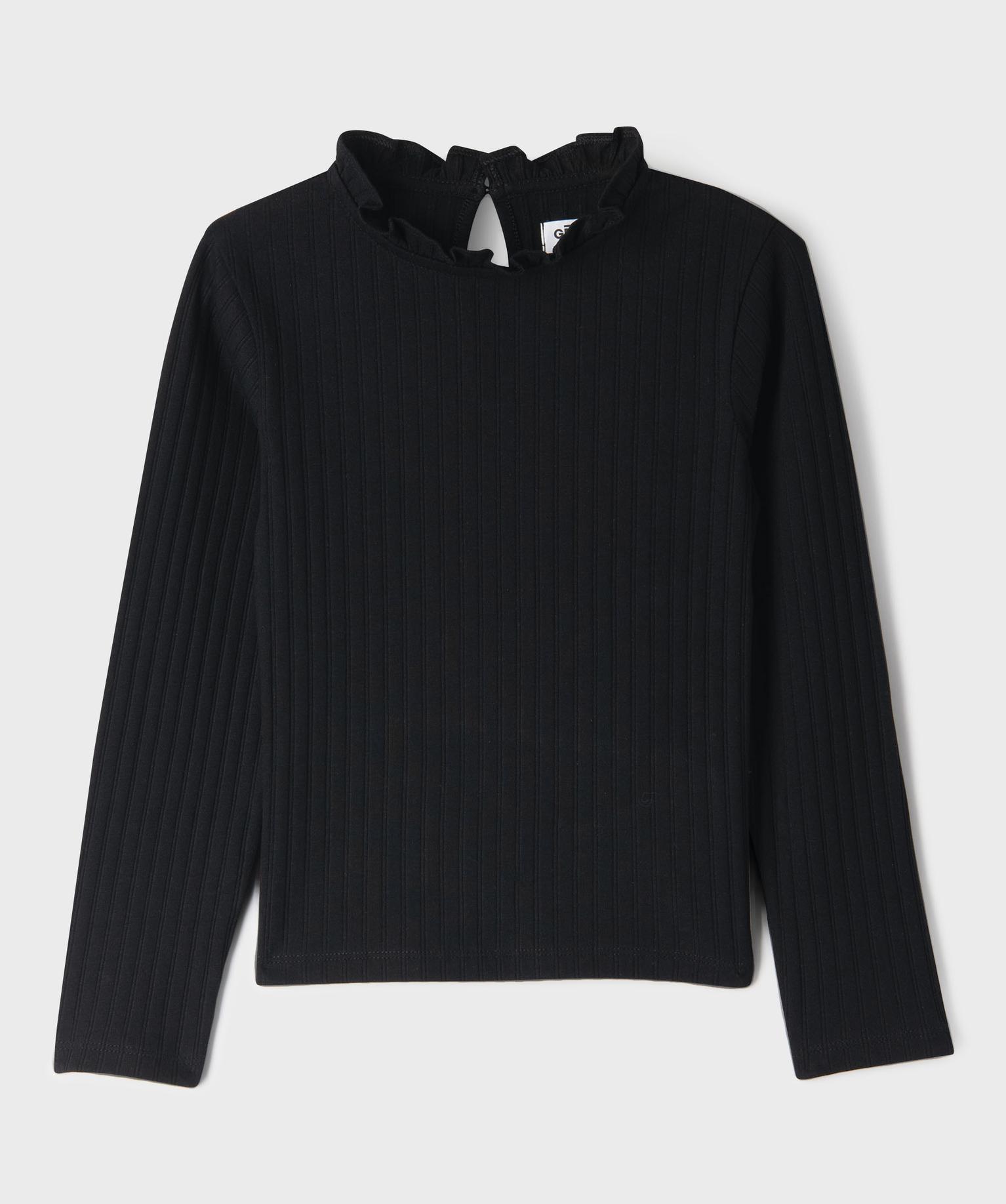 tee-shirt manches longues avec col rond fronce fille[missing] noir standard tee-shirts