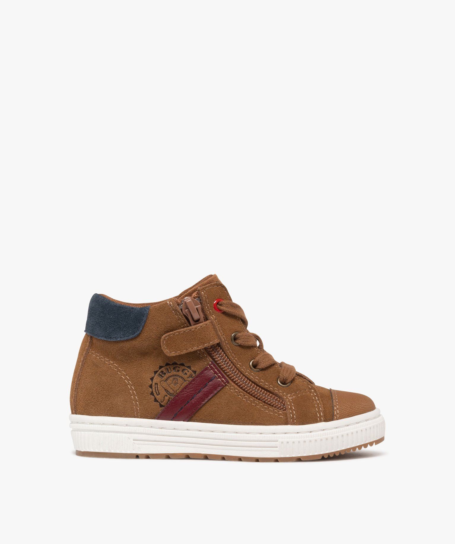 On aime ces baskets montantes de la marque Buggy, idéales pour chausser les petits garçons avec style et praticité. Leur dessus en cuir vachette est un gage de qualité et de souplesse. Pour les matins pressés, l'enfilage est facilité grâce à la fermeture zippée sur le côté, tandis que les lacets assurent un ajustement parfait au pied de votre enfant. La semelle intérieure en mousse et la semelle extérieure anti-dérapante garantissent bien-être et sécurité à chaque pas. Le petit plus malin ? La semelle intérieure est dotée d'un dessin amusant pour aider votre enfant à différencier le pied droit du gauche. Mettre ses chaussures devient un vrai jeu !