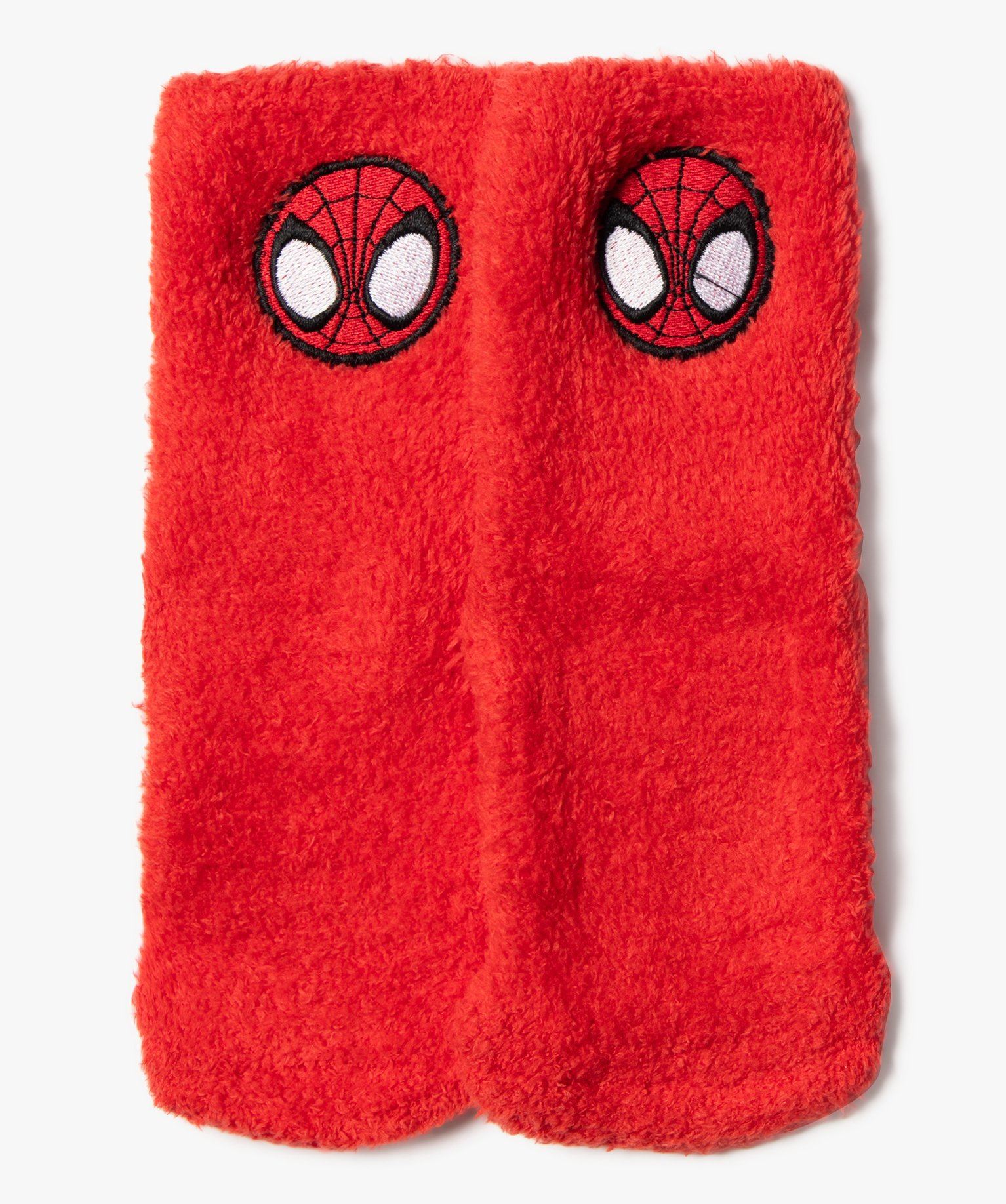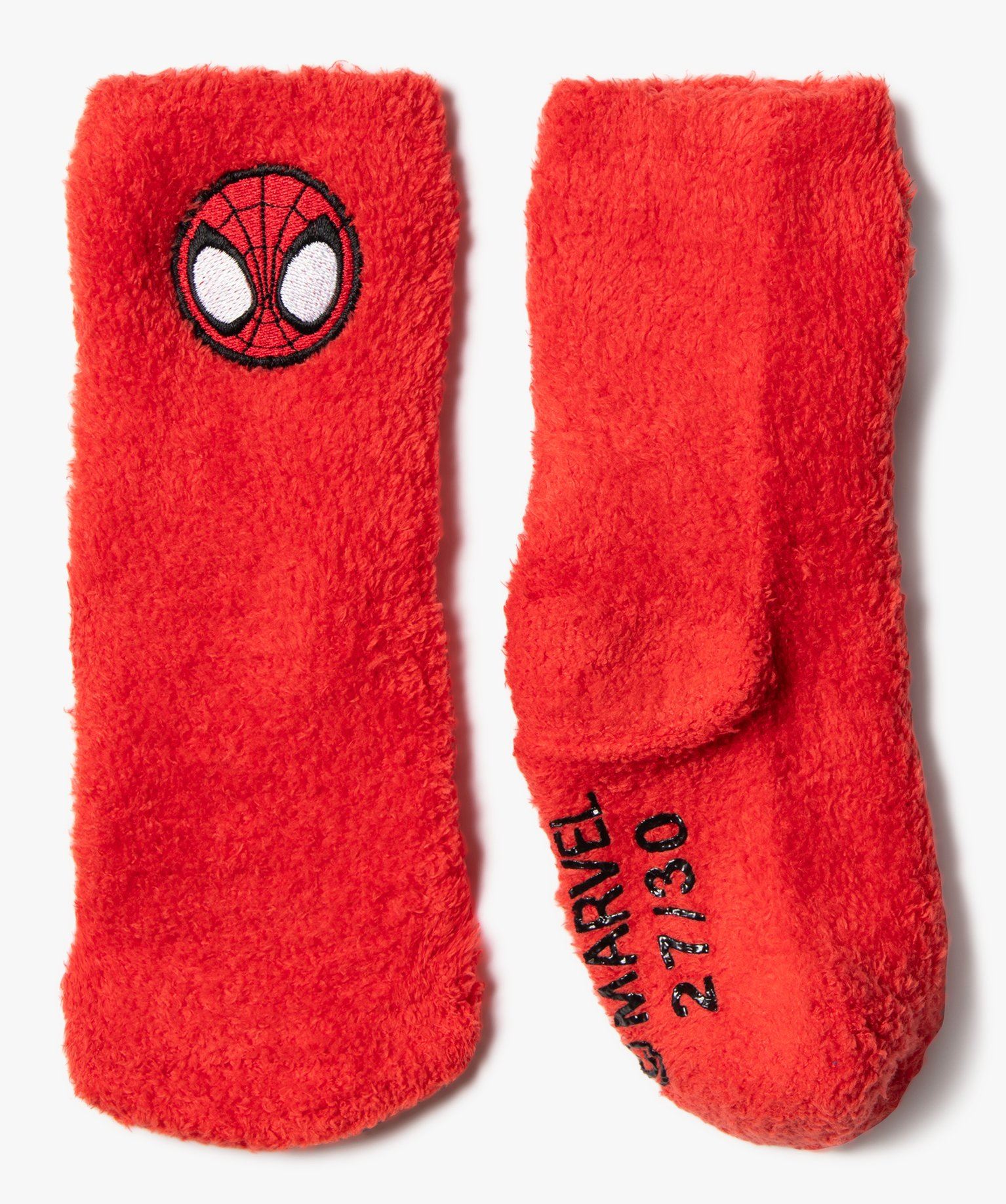 Colorées, douillettes, chaudes, ces chaussettes pour garçon Spiderman ont tout pour plaire aux enfants ! Elles sont incroyablement moelleuses grâce à leur maille chenille. Top en guise de chaussons, pour accompagner des tenues homeweaer ou encore pour contrer le froid dans les boots d'hiver. Ces chaussettes épaisses à tige haute sont décorées d'un patch Spiderman brodé.