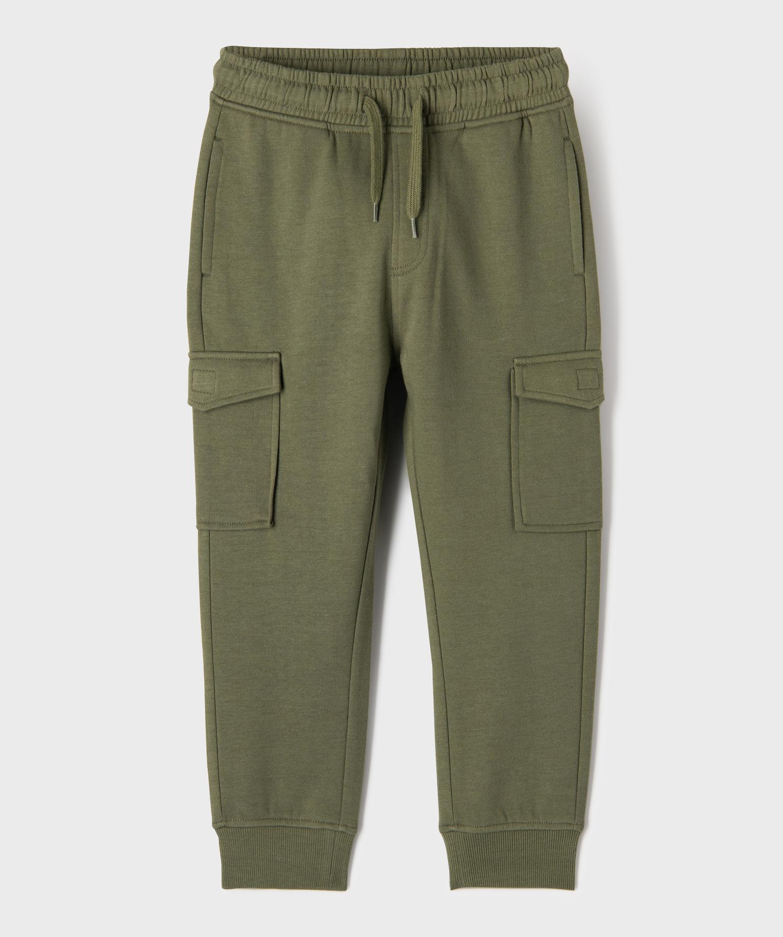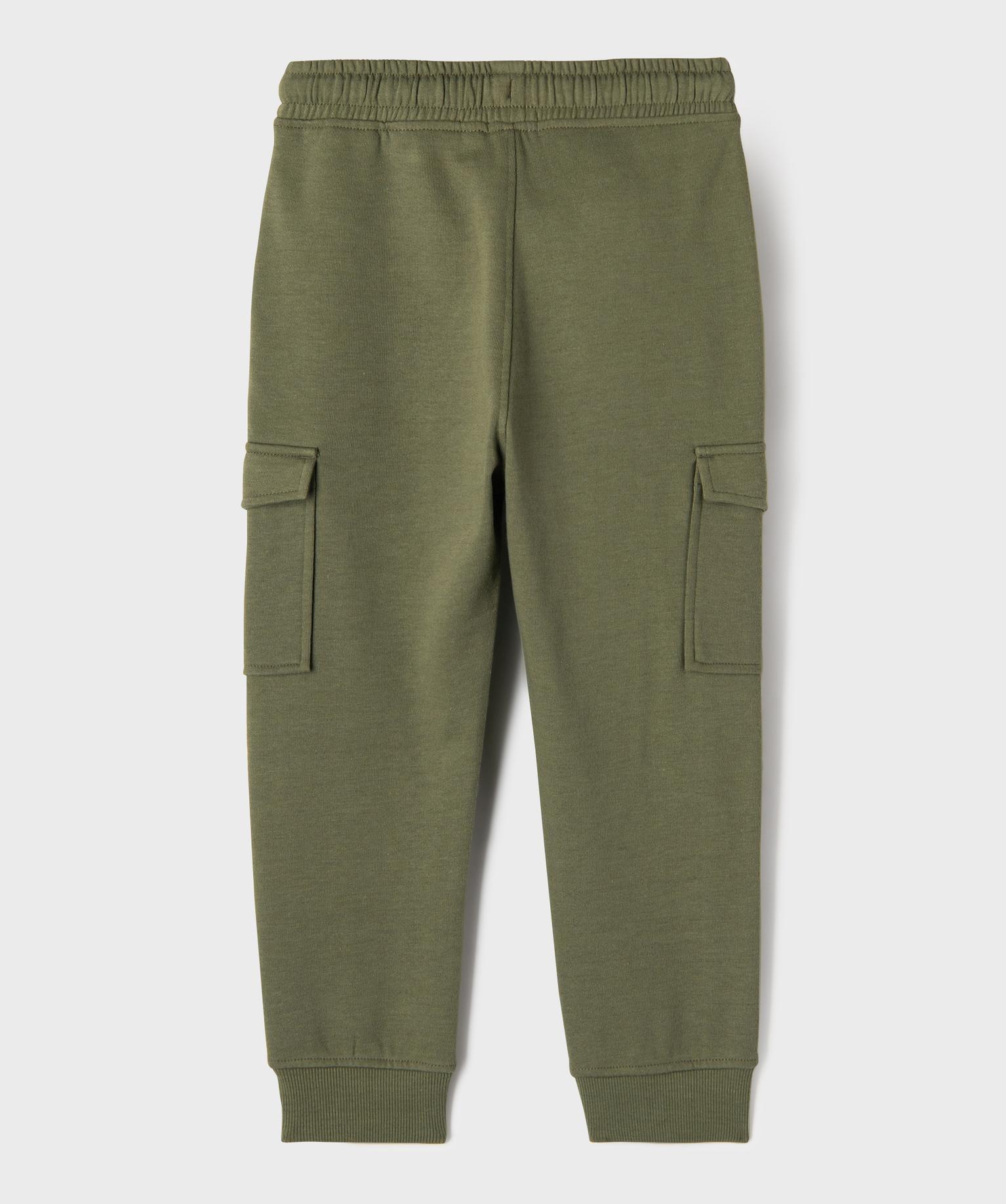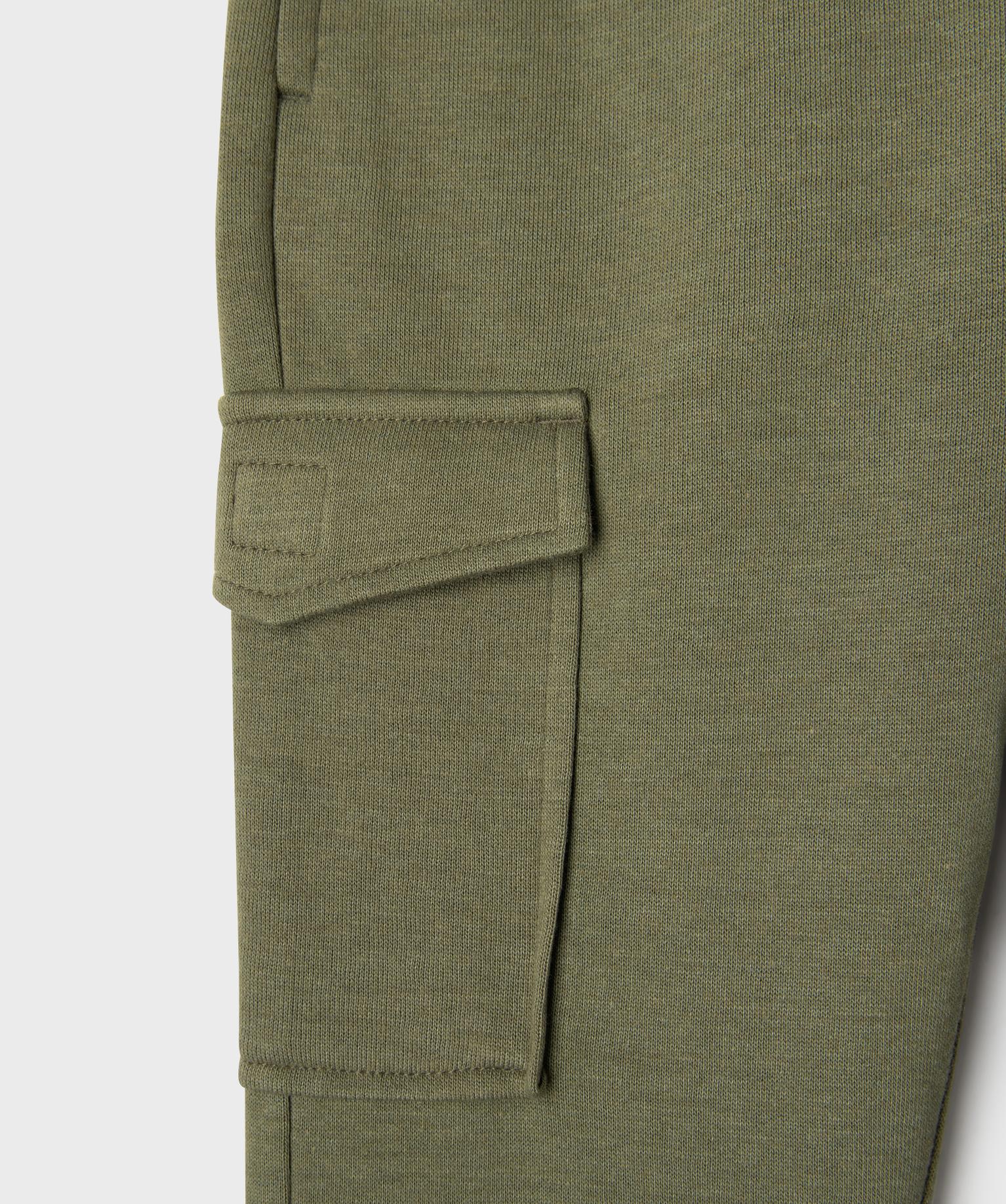 On aime ce pantalon qui allie le meilleur de deux mondes : le style d'un cargo et l'aisance d'un jogging ! Conçu dans une matière molletonnée, ce pantalon pour garçon adopte une coupe large qui assure une grande liberté de mouvement. Il est super pratique avec sa taille élastiquée qui s'ajuste parfaitement grâce à un cordon de serrage. Avec ses quatre poches, dont deux grandes poches à rabat sur les cuisses, il y a toute la place pour garder ses petites trouvailles. Les finitions en bord-côte aux chevilles assurent un bon maintien et une jolie silhouette.
