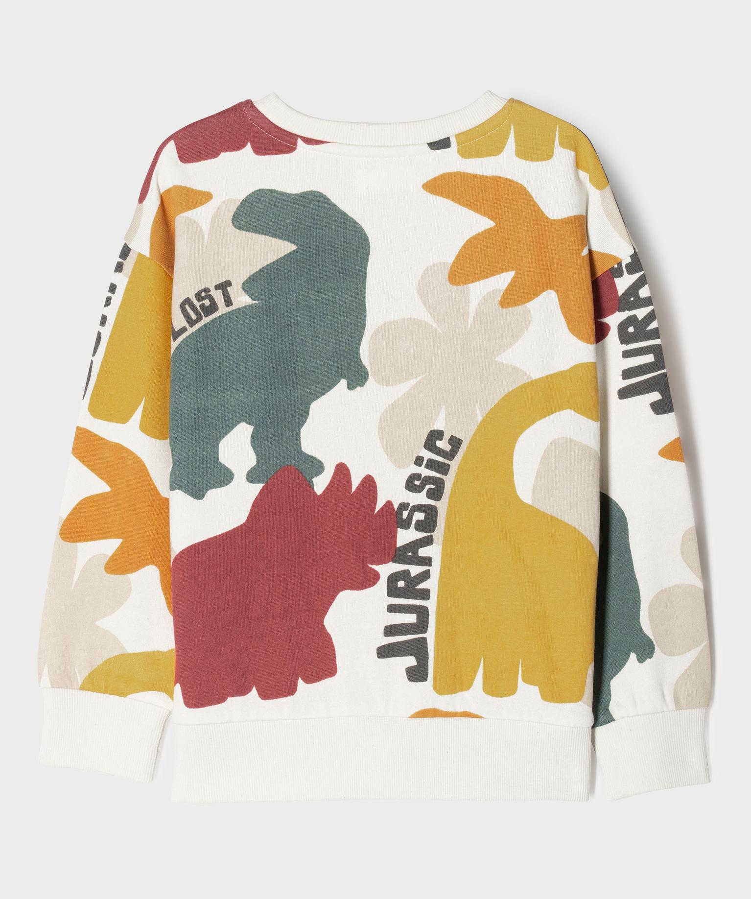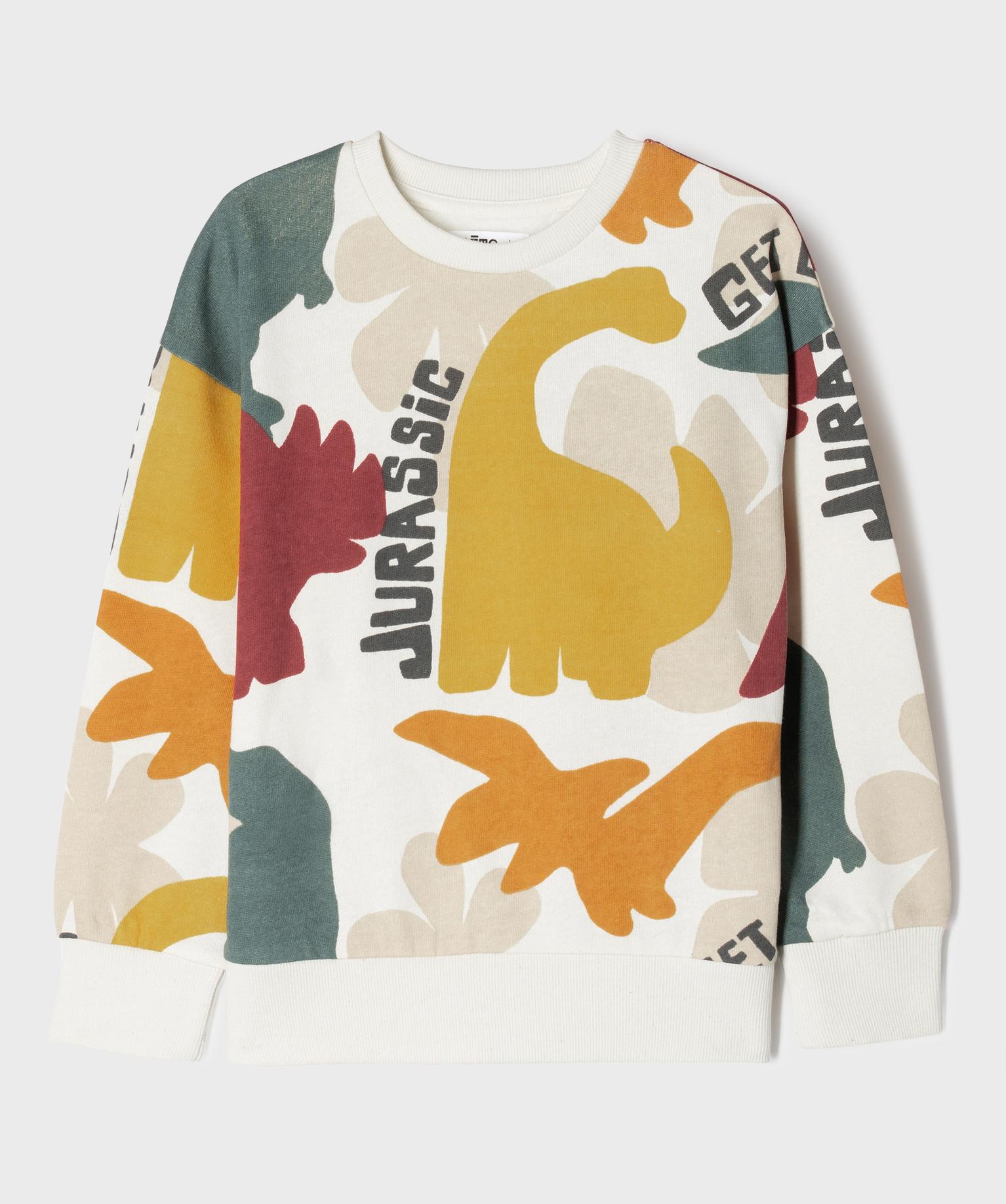 Le sweat garçon est un incontournable pour les petits aventuriers ! Ce sweat arbore un design fun et coloré en all over, mettant en avant des dinosaures stylisés qui ajoutent une touche ludique et dynamique au look. Sa matière molleton gratté très douce assure un confort optimal à votre enfant. Le sweat affiche une finition bord-côte uni aux poignets et à la taille, pour une bonne tenue et un contraste moderne.