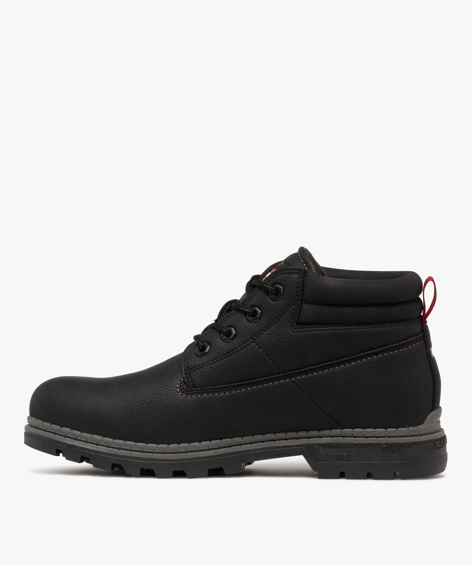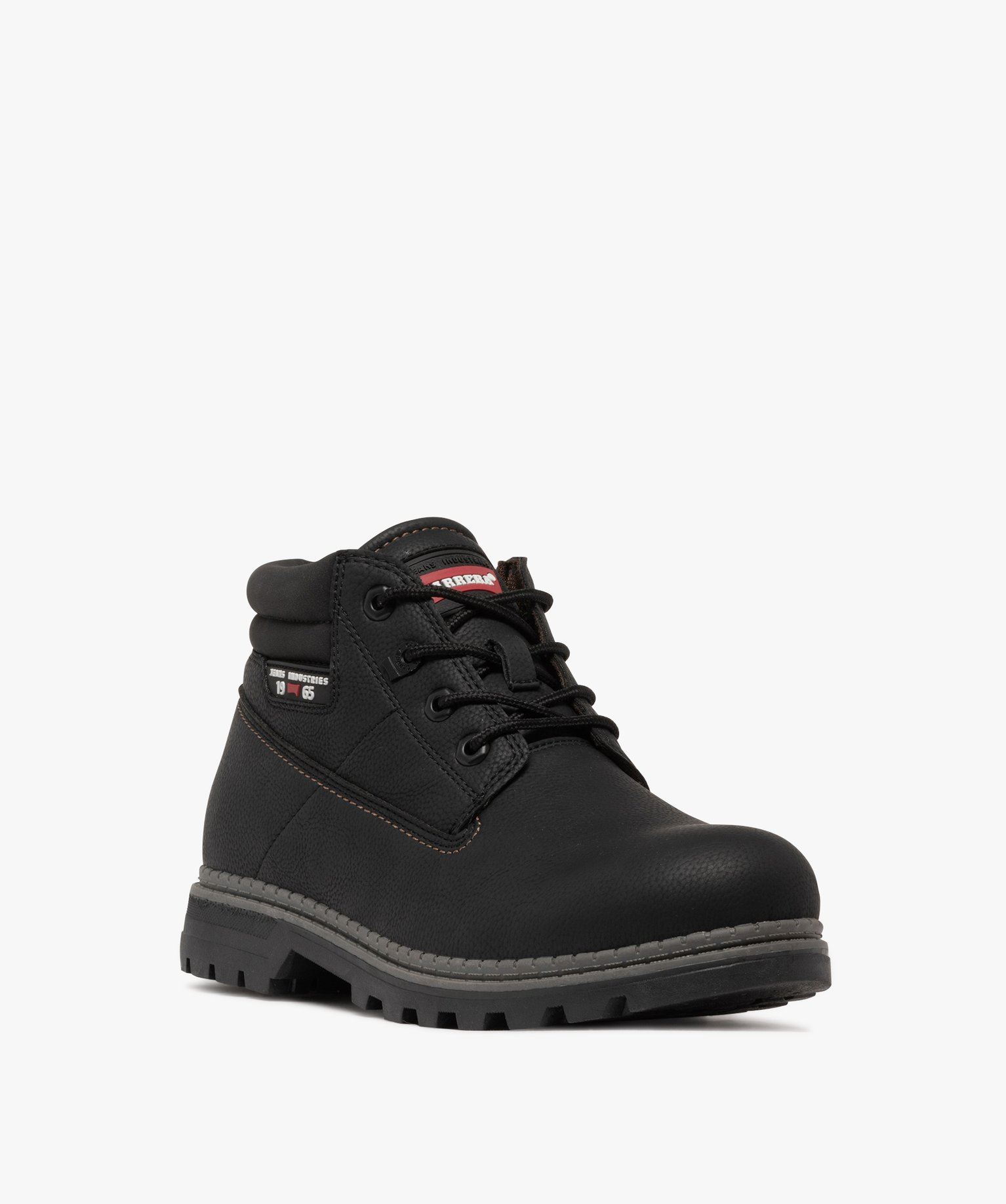 Vous pouvez immédiatement les imaginer portées avec vos jeans et tenues de mi-saison. Ces boots pour homme optent pour un look casual idéal lorsque vous souhaitez opter pour un look tendance et garder un réel confort. Montées sur une semelle crantée ton sur ton, une tige unie légèrement grainée et un col matelassé contrastant, ces boots mid-cut de la marque Carrera ont tout pour plaire ! Fermeture à lacets bicolores 4 oeillets métallisés. Semelle intérieure moussée et amovible.
