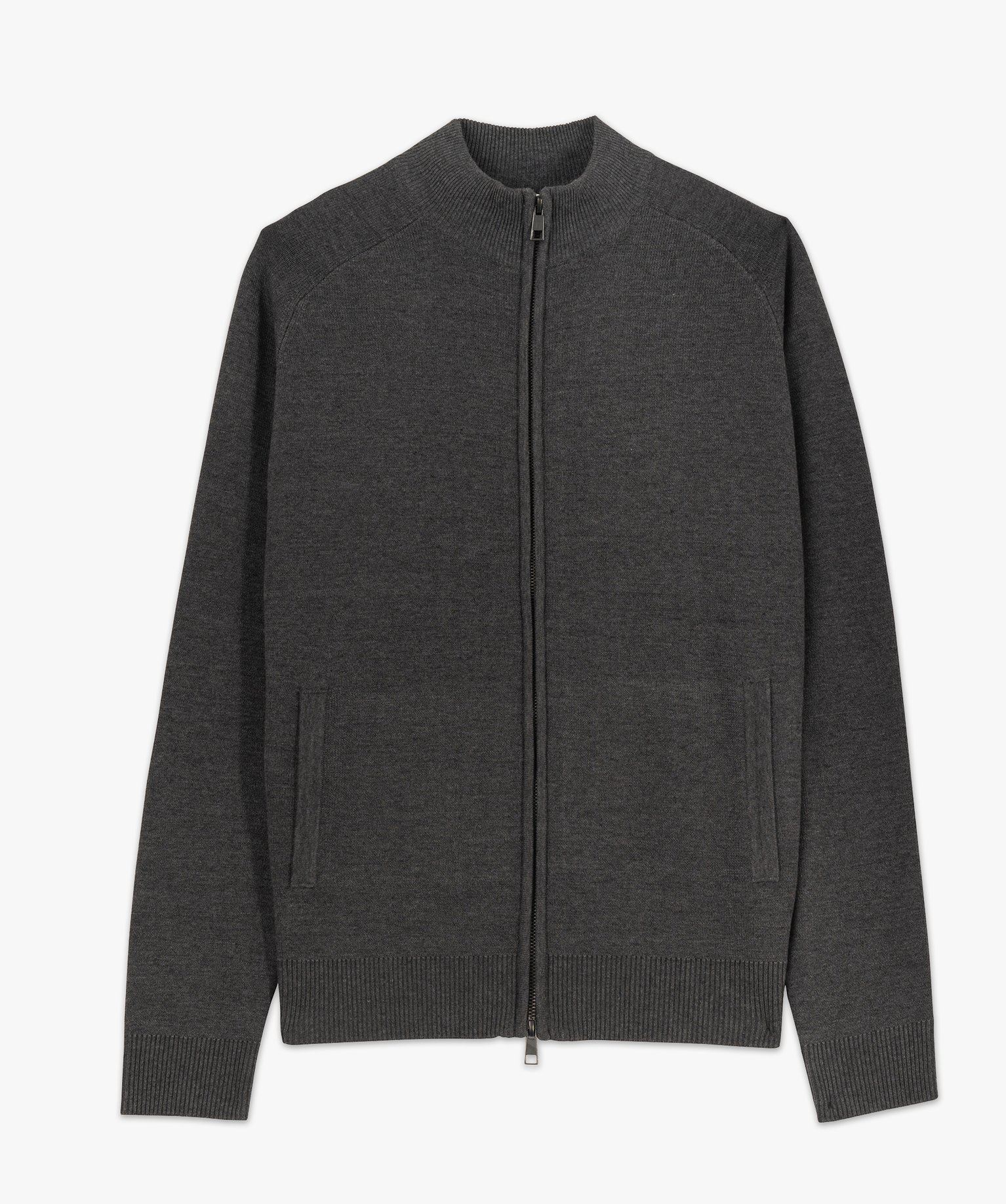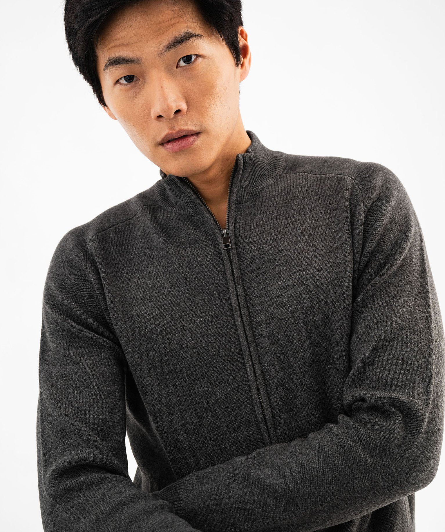 Un gilet zippé pratique et élégant, facile à marier avec l’ensemble du vestiaire masculin. Tricoté dans une maille confortable, il se ferme grâce à un zip à double curseur permettant une ouverture dans les deux sens. Ce gilet pour homme possède des poches raglan qui lui confèrent une allure décontractée. Un gilet original à porter sur un tee-shirt. Finitions bord-côte.