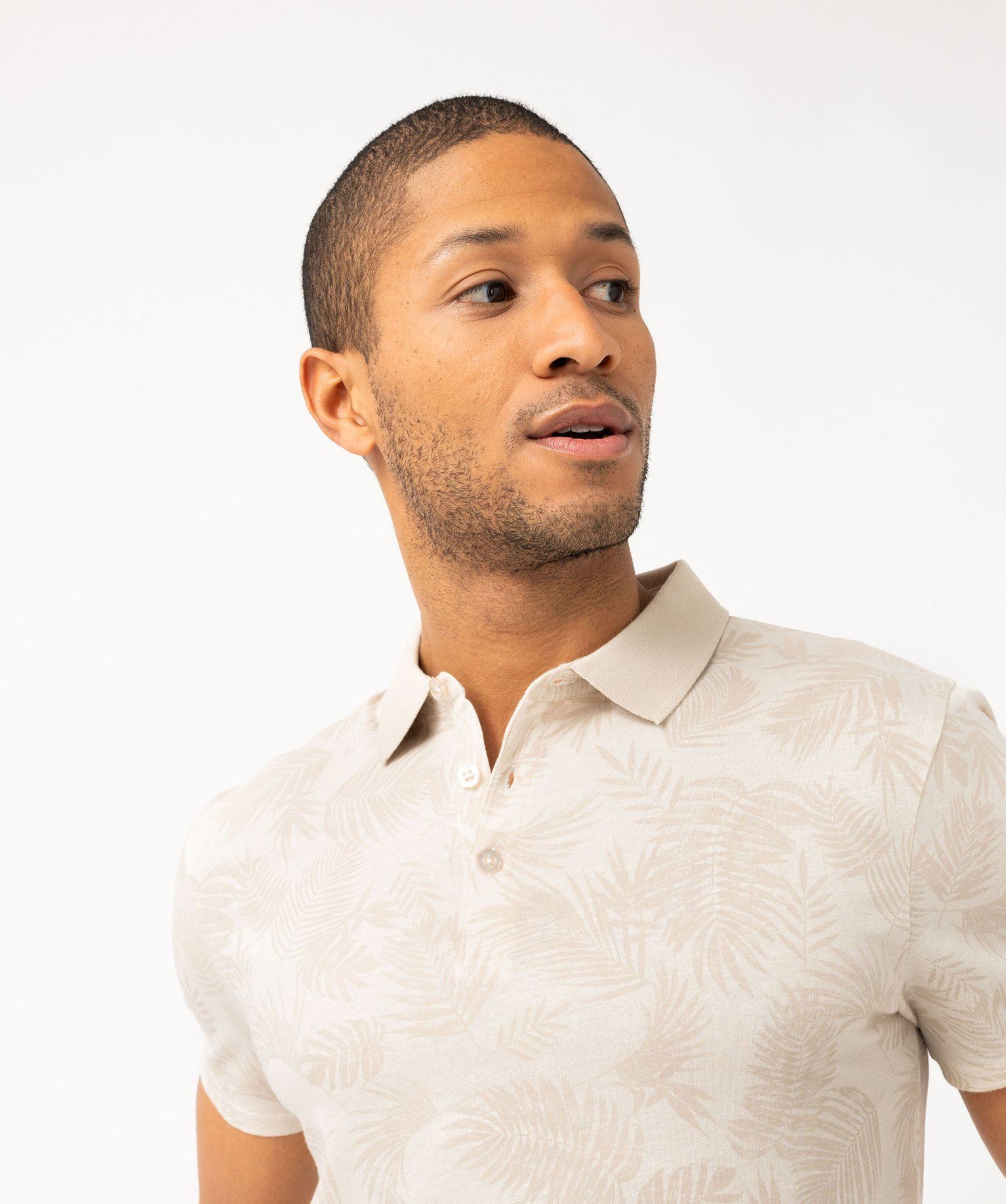 Changez du traditionnel polo uni en maille piquée, optez pour ce modèle très mode en coton rayé et rehaussé d'un motif feuillage. Le polo pour homme présente de très fines rayures sur lesquelles des feuilles exotiques se superposent en ton sur ton. Ce polo manches courtes imprimé à col boutonné est idéal pour créer des looks décontractés pour l'été.