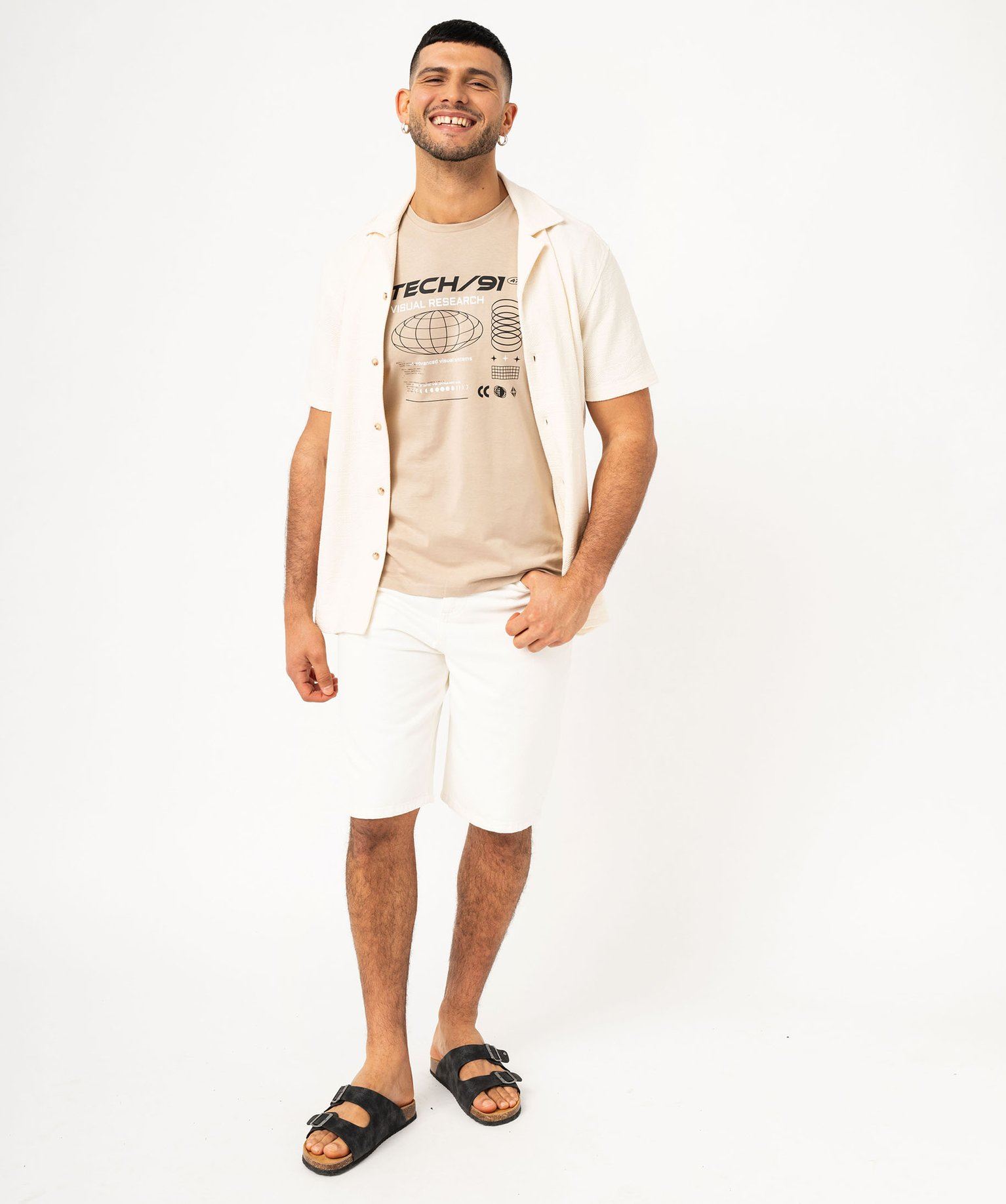 Donnez une touche streetwear à vos looks très facilement grâce à ce tee-shirt manches courtes. Ce tee-shirt homme se décline en effet en différents coloris intemporels et imprimés urbains sur l'avant. Stylé, il reste confortable avec sa coupe droite classique, sa confection en jersey de coton et son col rond en bord-côte. Top avec un pantalon cargo, un pantalon parachute ou un bermuda en maille large. Dos uni.